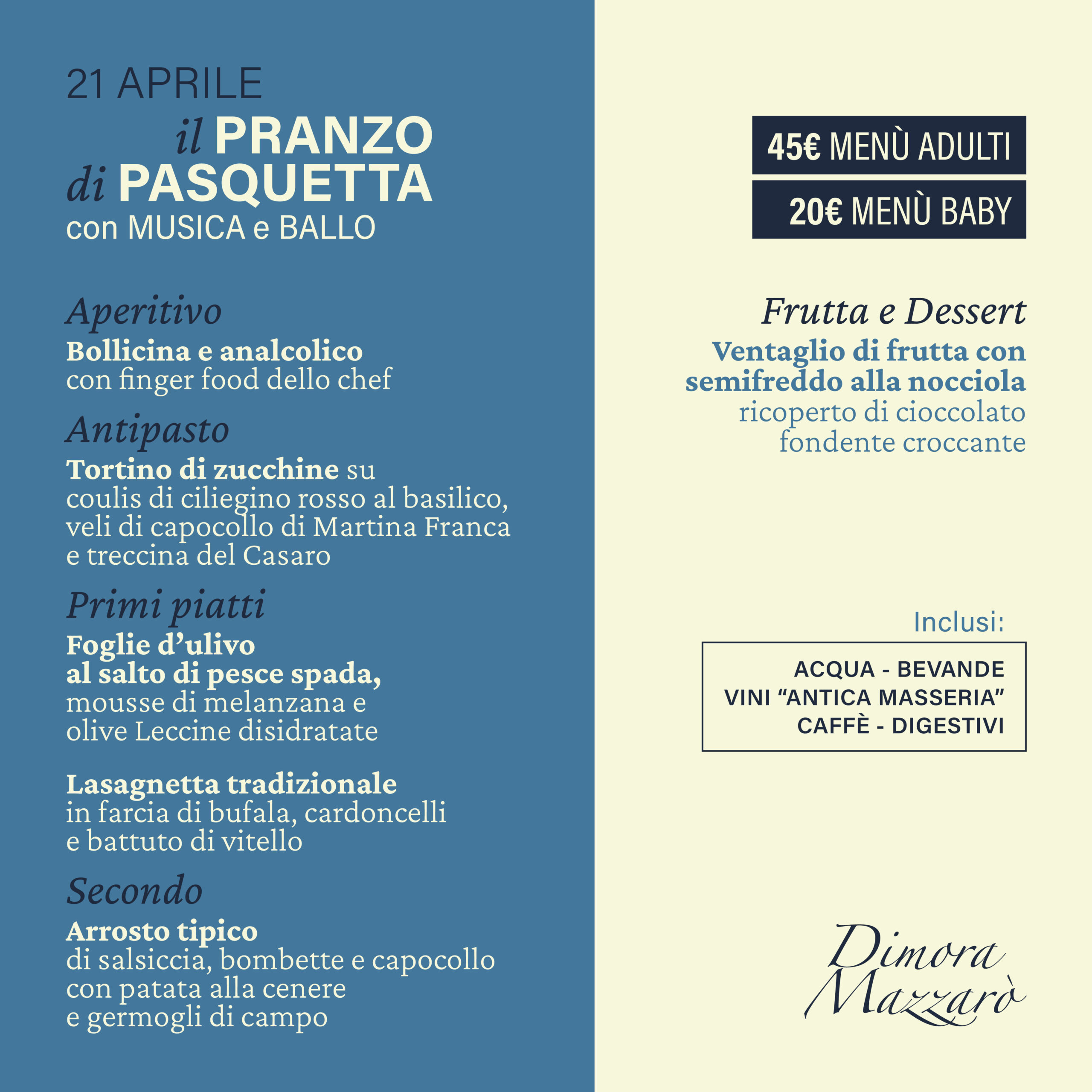 Venerdì 25 aprile 2025 | Pranzo del 25 aprile | Adulti 45, Bambini 20
