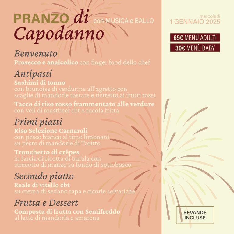 Pranzo di Capodanno 8 Novembre 2024 Mercoledì 1 gennaio 2025 | Pranzo di Capodanno | Adulti 65, Bambini 30